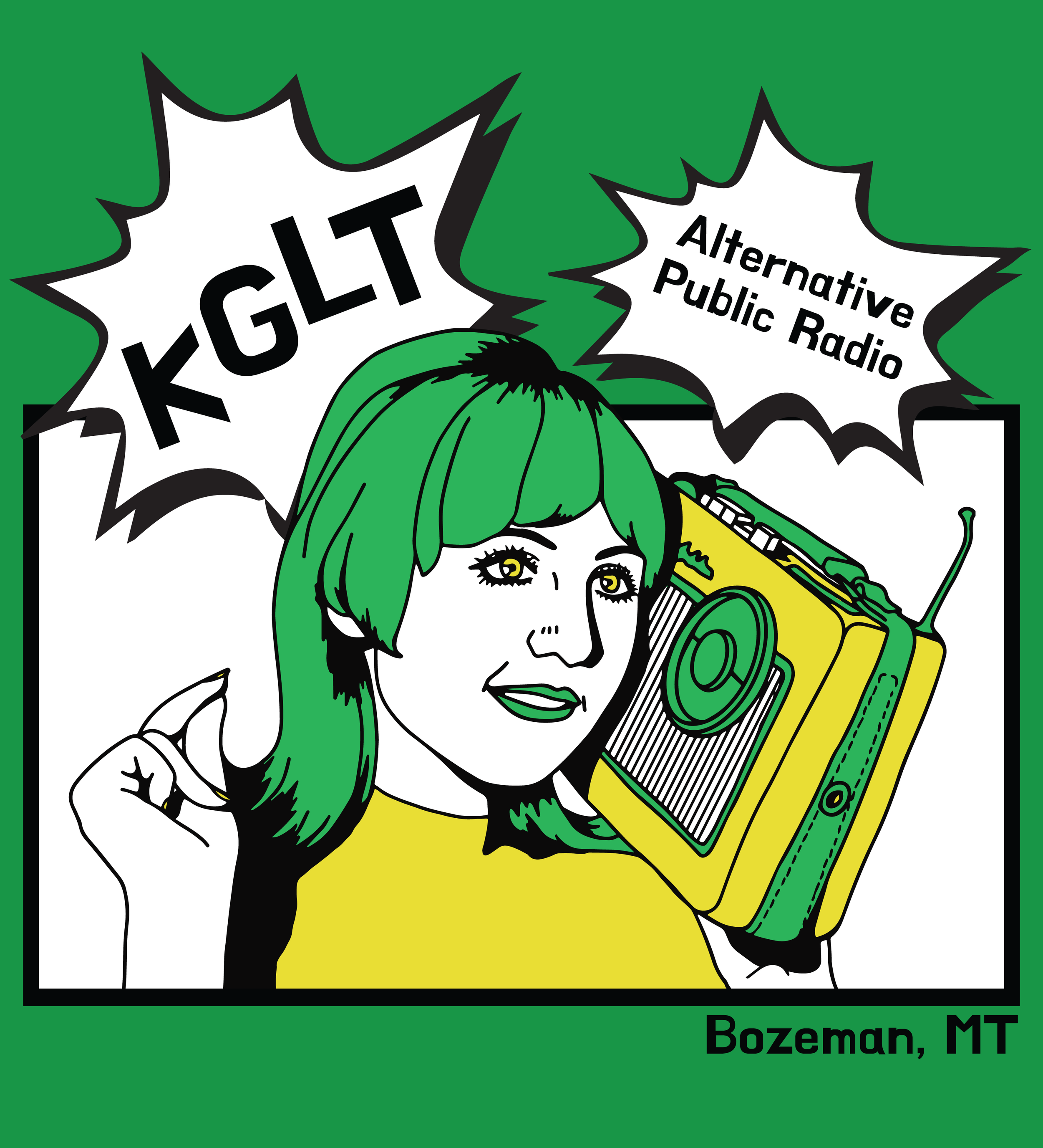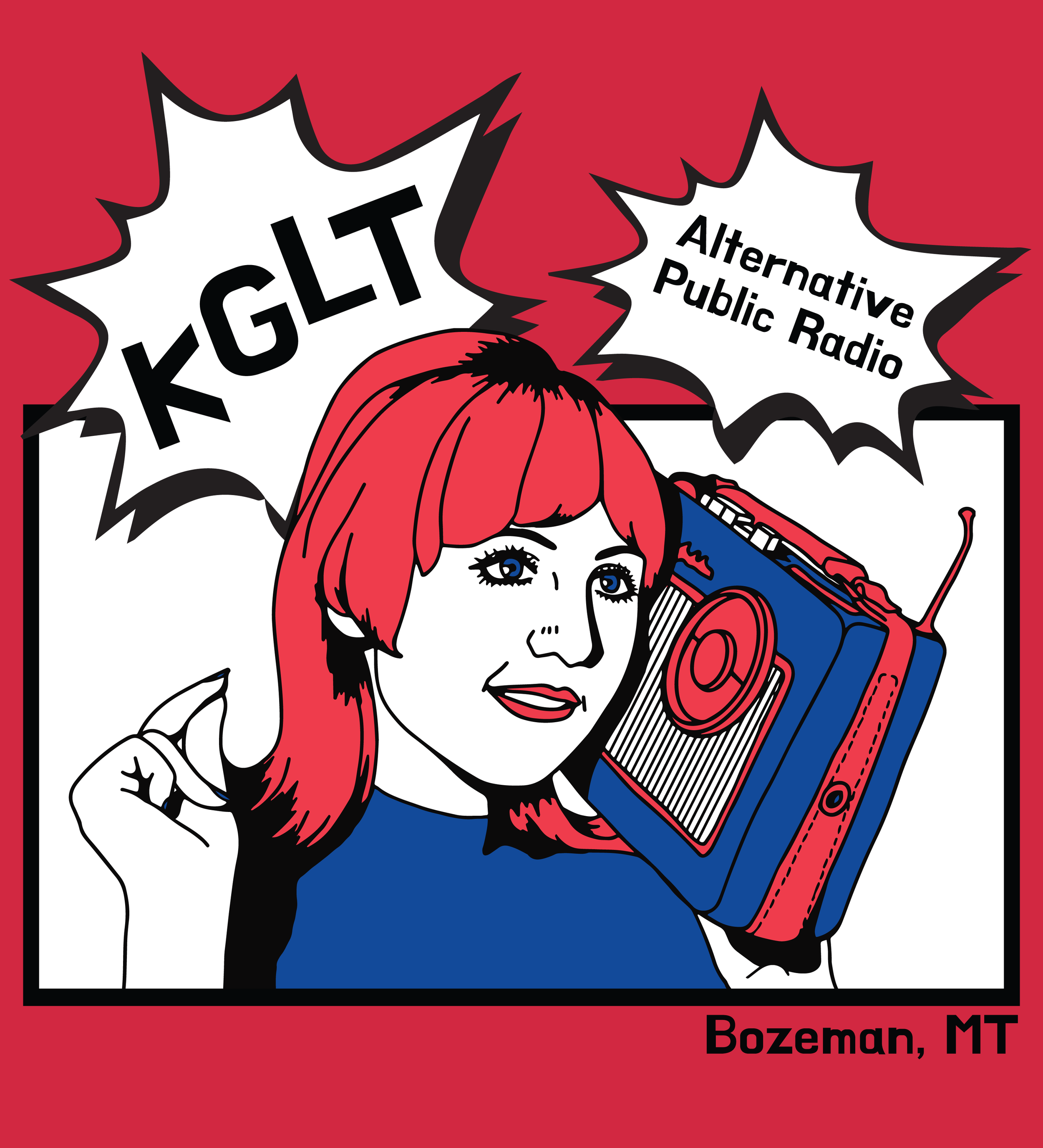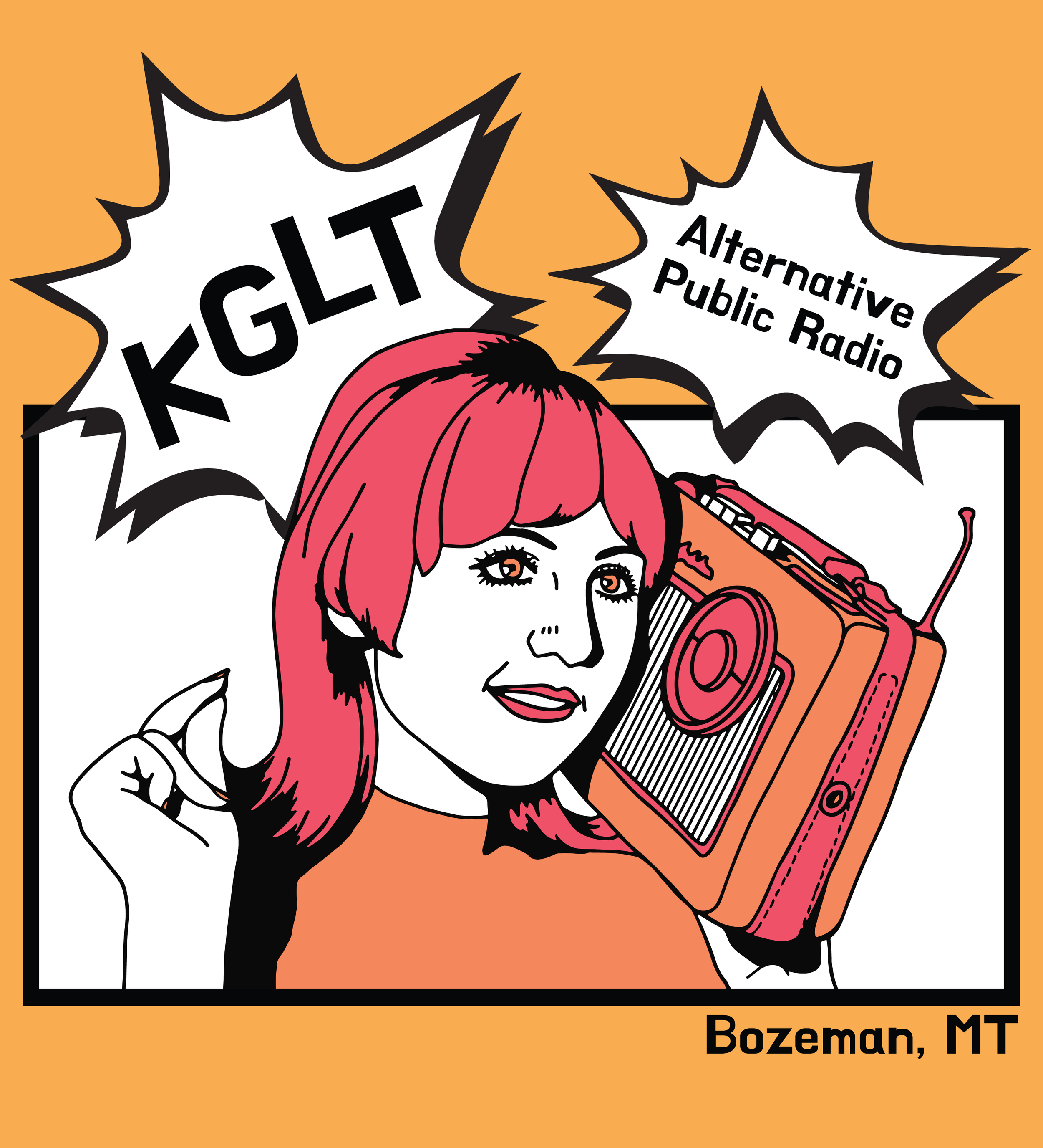 This design was created for a t-shirt design contest hosted by KGLT. The requirements for this competition was that the design must be radio oriented, had a 4 color limit, and had to contain the words “KGLT”, “Bozeman, MT” and “alternative public radio”. The illustration of the girl with the radio is based on an actual picture from the 1950s. This design was inspired by the Pop art style of the 1950s, specifically the part of the movement that utilized comic book characteristics, such as simple lines, speech bubbles, and panel structure.