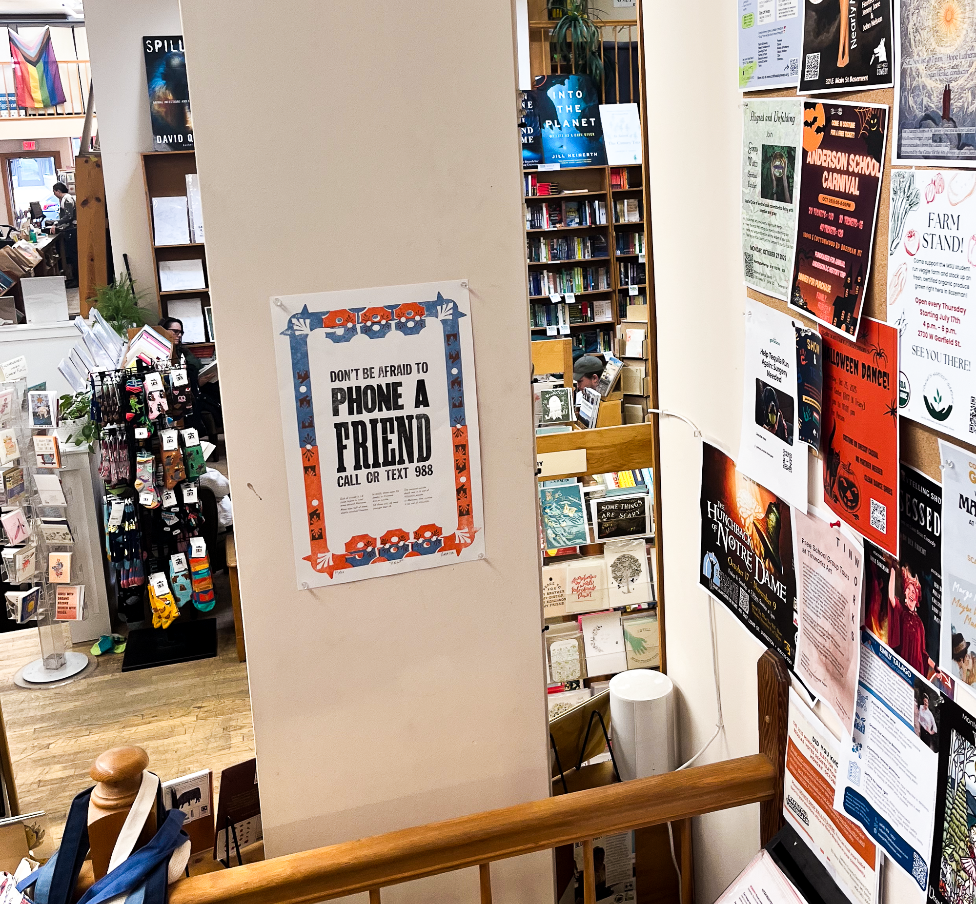 To make the message clear, I included 988 into the border design to emphasize the importance of the number. I included the decorative semicolons as well as it is a symbol that has been adopted by many suicide survivors and used to bring suicide awareness. The design was created in Illustrator and then lasercut into plexiglass, which was then hand-glued onto MDF board and made ready for printing.